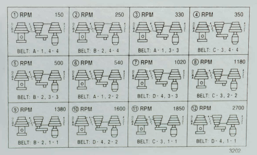 Spindle Speed Pulley Settings